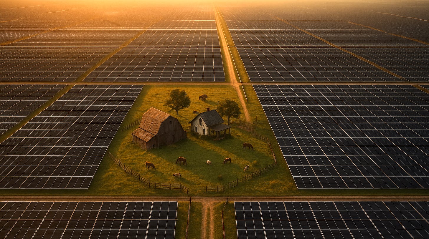You’re pointing to a cultural and demographic tipping point: rural communities and farming traditions are being dismantled, replaced with industrialized energy development. The climate narrative often frames solar as a universal good, but ignores: